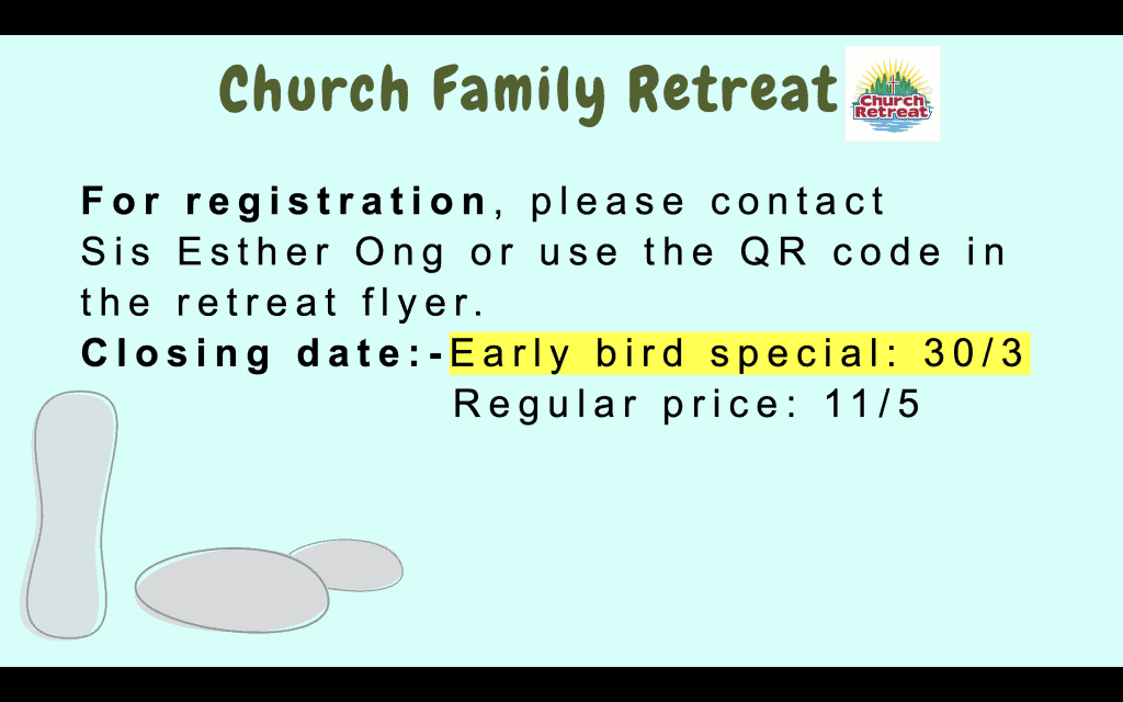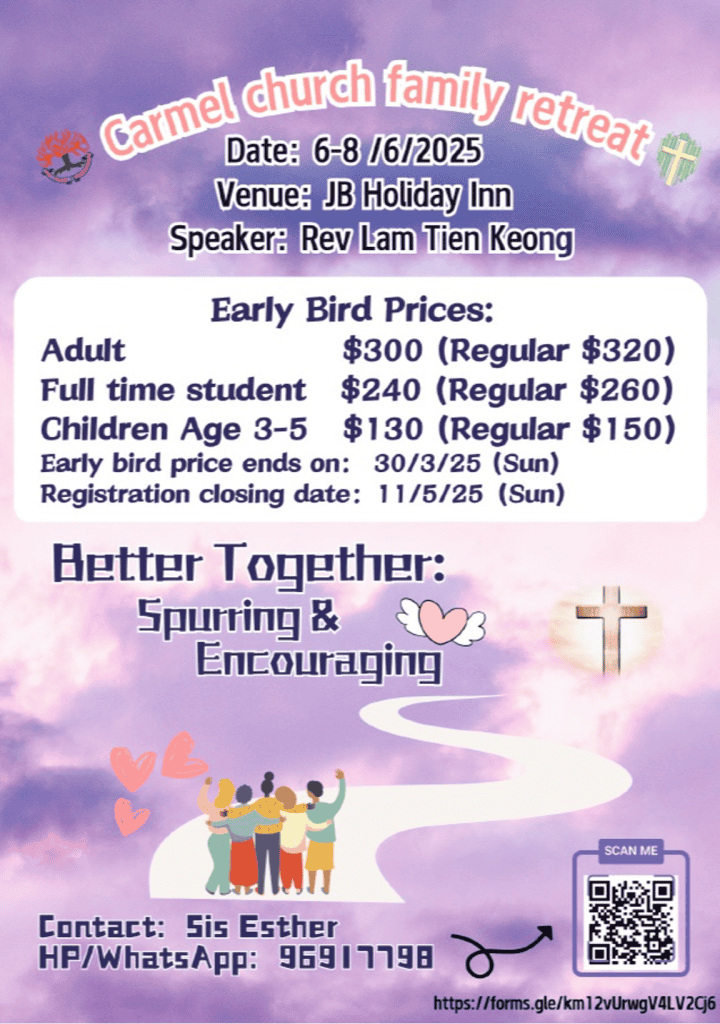 教会退修营(巴淡岛)(周四-周六) Retreat Venue 地点 : Batam Radisson Resort HotelDate 日期 : 13 – 15 June 2019Speaker 讲员 : Rev Peter KOH 许顺明牧师 CLOSING DATE 截至日期